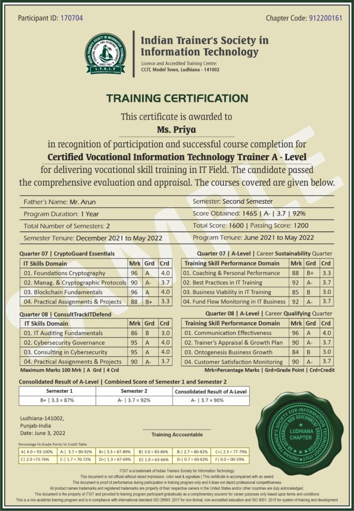 Semester 4 continues the journey into specialized cybersecurity fields, focusing on cryptography and IT governance. The purpose of this semester is to develop trainees’ ability to protect data through encryption and manage cybersecurity risks at an organizational level. The intention is to prepare participants for leadership roles in ensuring information security and governance. It includes following quarters: