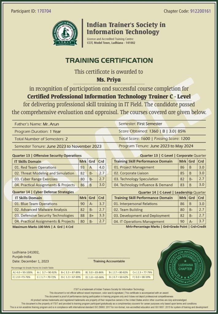 The C-Level of the Training of Cybersecurity Trainers (TOT) Program aims to produce cybersecurity leaders capable of managing large-scale security operations, developing strategic security policies, and providing expert consulting services. By the end of this level, participants will have mastered offensive and defensive security operations, developed leadership and consulting skills, and gained the ability to train and mentor future cybersecurity professionals. Graduates of the C-Level will be equipped to lead cybersecurity teams, design organizational security strategies, and provide expert guidance on regulatory compliance and risk management.